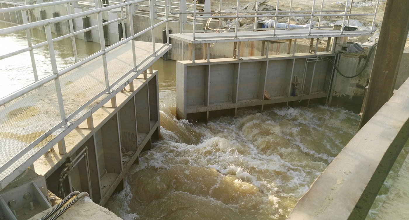 This gate is installed across river channel to control differential water level in order to provide a smooth exit/entrance passage for boats.